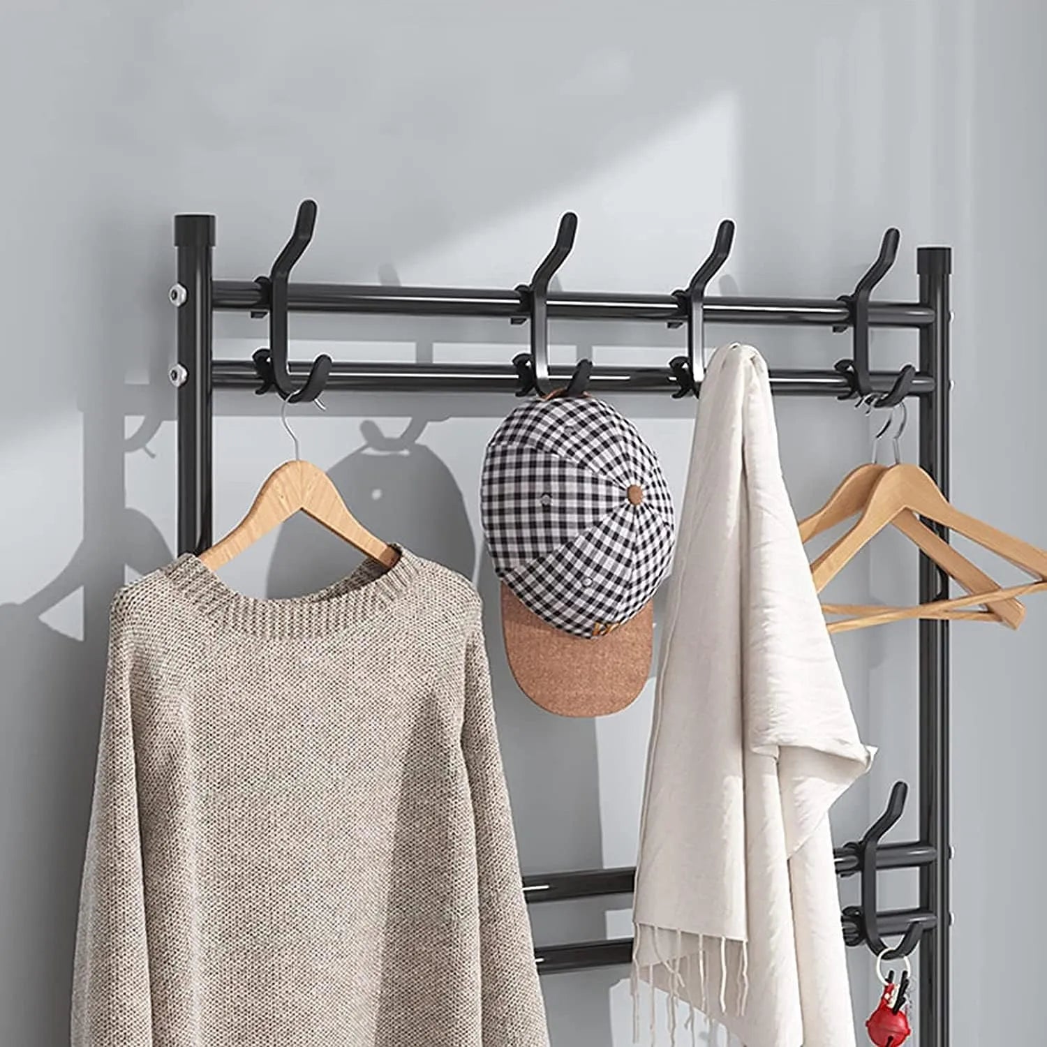 - Beautiful and practical: The stylish color and structure design can be placed anywhere, not only at the entrance, for shoes, bags, scarves, keys, umbrellas, etc, but also for storing clothes in the room.