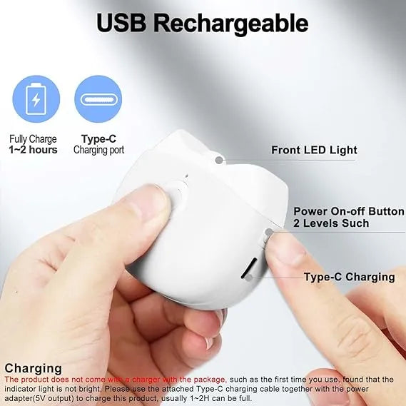 - Two-Speed Model and Rechargeable Portable: This nail trimmer offers the convenience of One-Button Operation – just touch the switch to start the clipper and press to adjust the speed. The dual-speed design, high and low, caters to users of all ages, including children and the elderly, without the need for a user manual. The built-in 300mAH high-capacity battery can be fully charged in just 1~2 hours using the included Type-C cable, making it perfect for travel or business trip